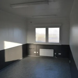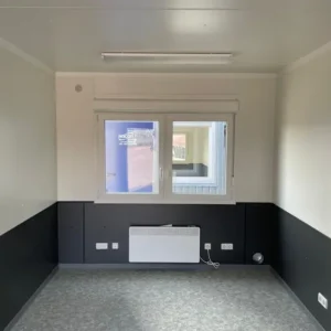 The 20ft Accommodation 6 x 3 unit with kitchen is the newest unit we’ve added to our range. These units are easy to transport from A to B, as they are designed with additional connections at the height of the standard 20ft chassis. They also feature two tilt-and-turn windows with roller shutters and anti-lift safety devices, as well as electricity and electric heating. There’s also space to prepare lunch in the mini kitchen. A perfect place to work or meet during a (long-term) project. You can buy or rent this container from Fairdeal Containers. Ask our specialists for a competitive quote!
